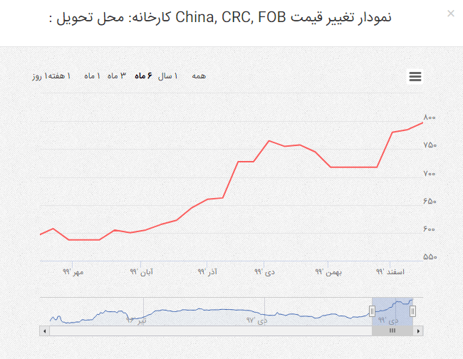 با توجه به اینکه قیمت محصولات فولادی همیشه در نوسان بوده است، و با توجه به اینکه از روی نمودار قیمتها و روند آن میتوان بازار را پیش بینی کرد، تلاش آرتان پرس بر این است که قیمت محصولات فولادی و به خصوص ورق روغنی چه در بازار داخلی و چه در بازار خارجی را در اختیار عموم قرار دهد. با مراجعه به سایت خبری آرتان پرس همانند شکل زیر میتوانید قیمت ورق روغنی را در بازارهای مهم و کلیدی و در داخل ایران دنبال کنید.
