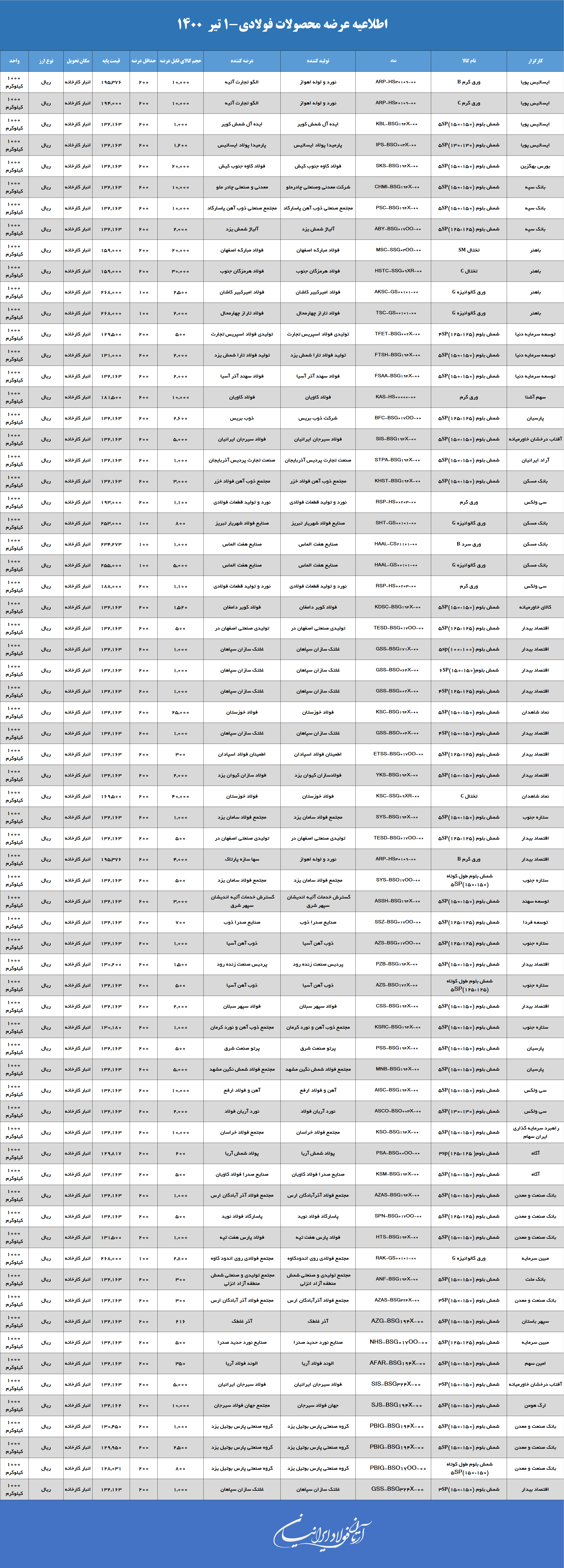 اطلاعیه عرضه انواع شمش، تختال و ورق فولادی برای امروز سهشنبه با تاریخ ۱۴۰۰/۰۴/۰۱ در بورس کالا