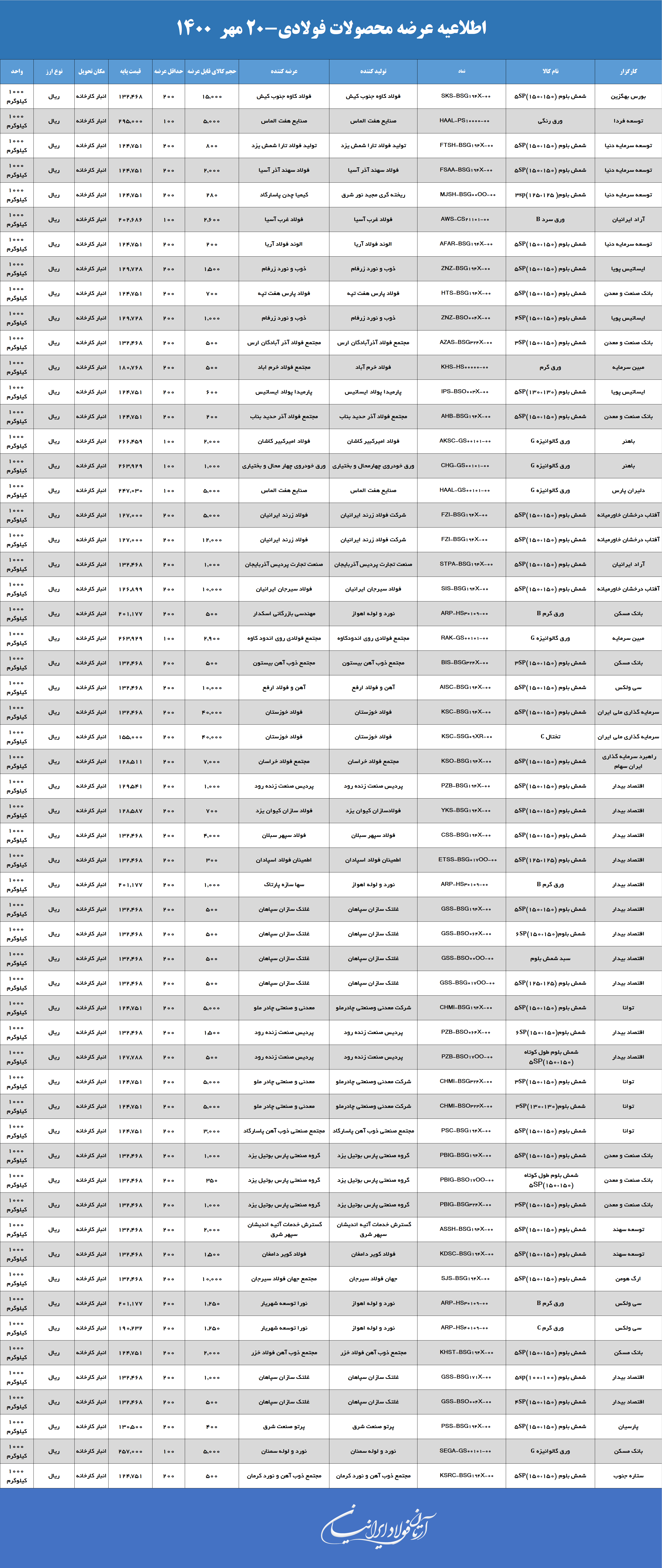 اطلاعیه عرضه محصولات فولادی در بورس کالا در تاریخ ۱۴۰۰/۰۷/۲۰