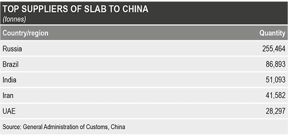 در همین حال و بر اساس داده های موجود، مهمترین تامین کنندگان اسلب چین به ترتیب روسیه، برزیل، هند، ایران و امارات متحده عربی بوده اند.