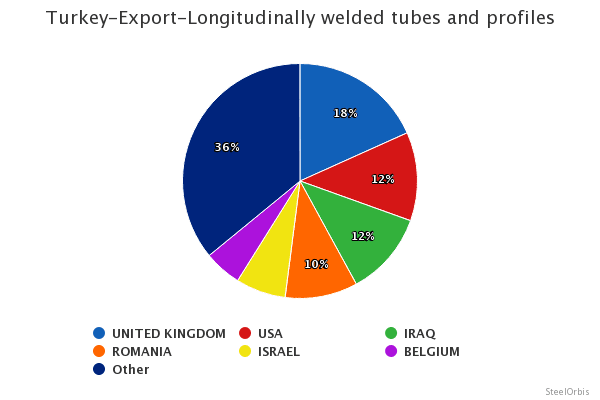 در این دوره، بزرگترین مقصد صادرات لوله و پروفیل ترکیه، انگلستان بود که با رشد ۳۳.۸ درصدی نسبت به سال قبل ۴۲۵۶۶ تن متریک دریافت کرد. پس از بریتانیا، ایالات متحده با ۲۸۴۲۷ تن متریک و عراق با ۲۶۸۶۴ تن متریک در رده های بعدی قرار دارند. برترین مقاصد صادراتی لوله و پروفیل طولی ترکیه در ژانویه و فوریه امسال به شرح زیر است: