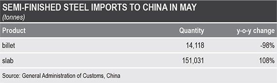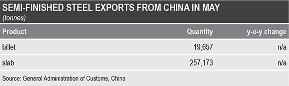 داده های منتشر شده توسط اداره کل گمرک چین در ۲۰ ژوئن نشان می دهد که کل صادرات بیلت و اسلب چین در ماه می نسبت به آوریل ۱۰۰ درصد افزایش یافته است و اسلب سهم اصلی آن بوده است.