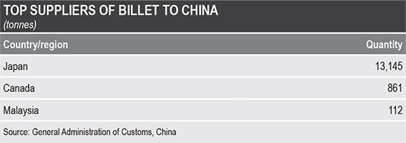 ژاپن بزرگترین تامین کننده بیلت به چین و امارات متحده عربی بزرگترین تامین کننده اسلب به چین بودند.