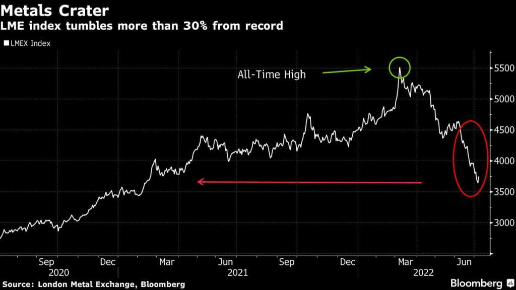 به عنوان مثال، هفته گذشته مس در معاملات روزانه برای مدت کوتاهی به زیر ۷۵۰۰ دلار در هر تن سقوط کرد که پایین ترین میزان نسبت به اواخر سال ۲۰۲۰ می باشد و نسبت به رکورد مارس نیز حدود ۲۹ درصد کاهش یافته است.