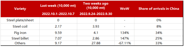 جدول زیر میزان میزان محموله های فولادی ارسال شده از بنادر خارج از چین و از بنادر چین را در هفته اول اکتبر نشان می دهد.
