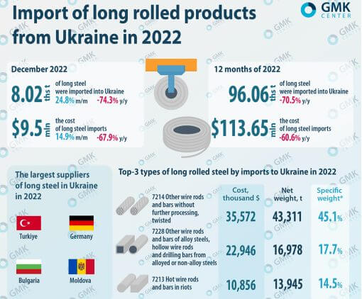 با توجه به حمله روسیه به اوکراین و اشغال شدن برخی کارخانه های بزرگ مانند آزوفستال و ایلیچ، میزان واردات محصولات فولادی طویل نورد شده توسط اوکراین در سال ۲۰۲۲ کاهش یافت.
