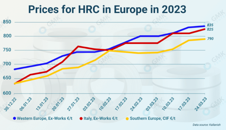 به نقل از چندین منبع خبری، در اروپای غربی قیمت کویل نورد گرم فولادی تا ۲۴ مارس ۲۰۲۳ در محدوده ۸۲۰ تا ۸۵۰ یورو در هر تن گزارش شد. این در حالی است که قیمت کویل نورد گرم فولادی اروپا در ۲۴ مارس حدود ۳۰ یورو در هر تن یا ۳.۶ درصد بیشتر از قیمت اعلام شده در ۲۴ فوریه بوده است.
