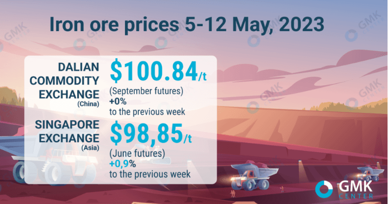شکل زیر قیمت سنگ آهن در بورس کالای دالیان و بورس سنگاپور چین را در هفته ۵ تا ۱۲ می ۲۰۲۳ نشان می دهد.