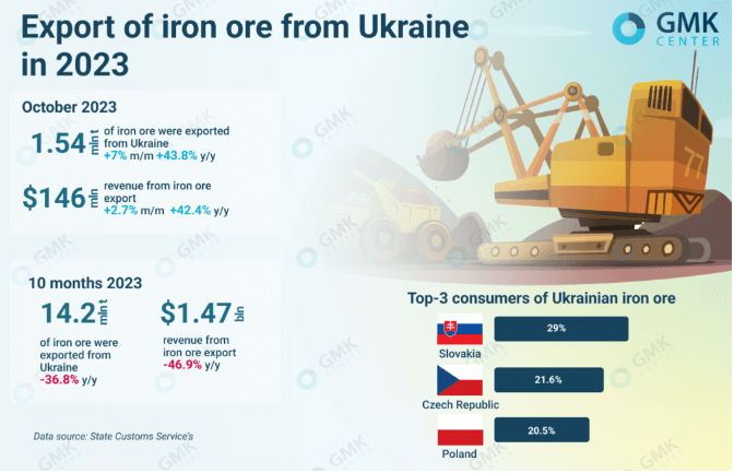 به نقل از چندین منبع خبری، در ژانویه تا اکتبر ۲۰۲۳، اسلواکی با ۲۹ درصد بیشترین سنگ آهن اوکراین را مصرف کرده است. همچنین جمهوری چک با ۲۱.۶ درصد در رتبه دوم و لهستان با ۲۰.۵ درصد در رتبه سوم قرار دارند. بررسی ها نشان می دهد قبل از شروع جنگ در اوکراین، مصرف کننده اصلی سنگ آهن اوکراین کشور چین بوده، اما به دلیل محاصره بنادر اوکراین، تحویل مواد خام به جمهوری خلق چین غیررقابتی شده است.
