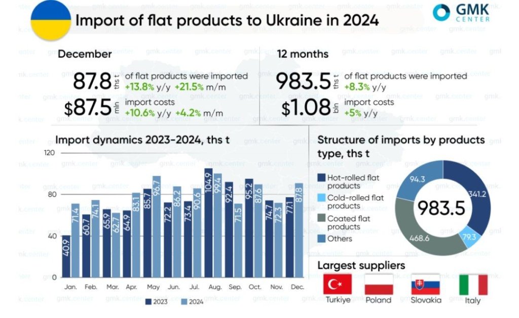 در دسامبر ۲۰۲۴، مصرفکنندگان اوکراینی ۸۷.۸۲ هزار تن محصولات تخت وارد کردند که نسبت به دسامبر ۲۰۲۳ ۱۳.۸ درصد افزایش و نسبت به نوامبر ۲۰۲۴ ۲۱.۵ درصد رشد داشته است.