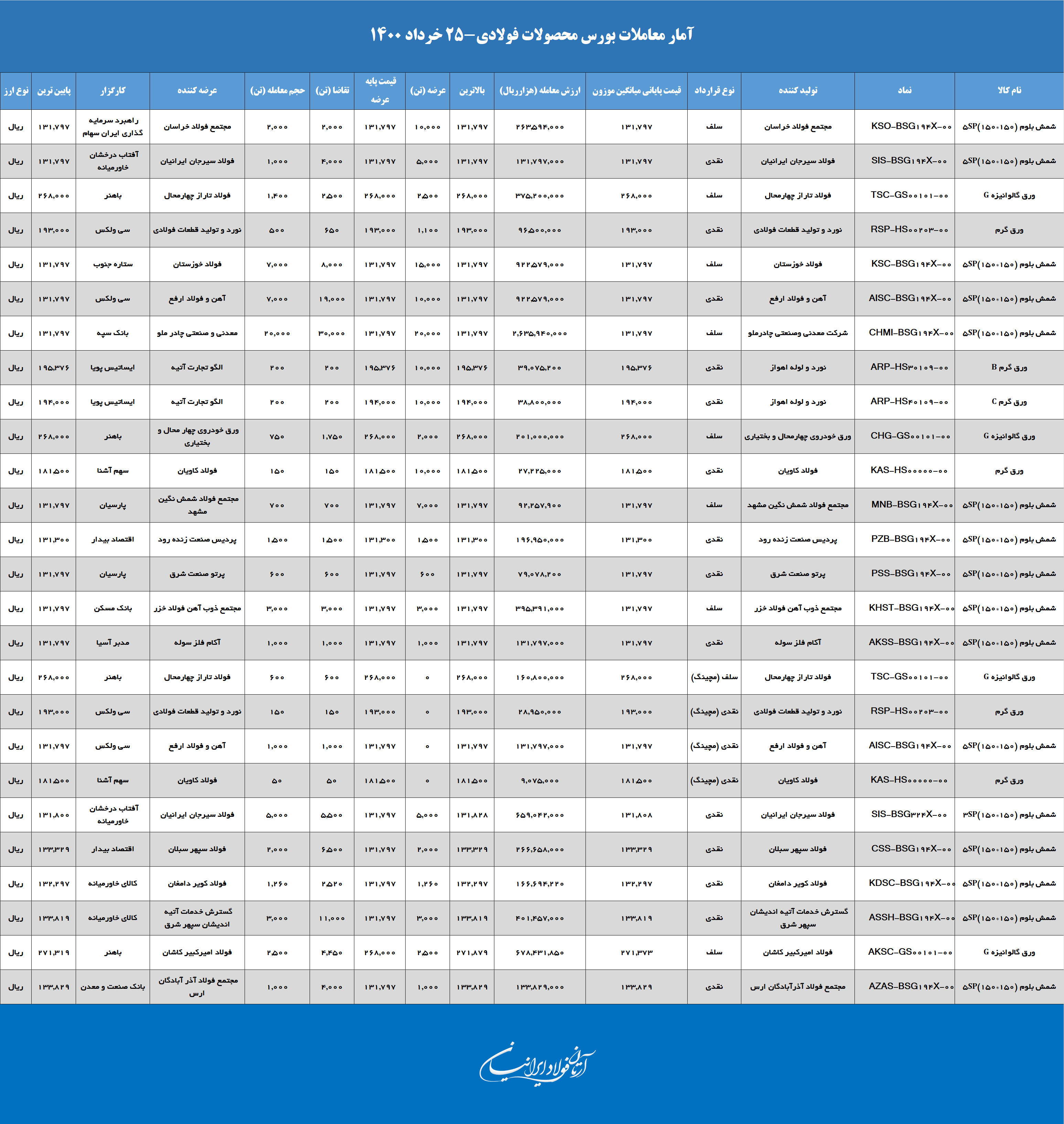 امروز سه شنبه۲۵ خرداد ۱۴۰۰، شاهد معامله انواع شمش بلوم، ورق گرم و ورق گالوانیزه در بورس کالا بودیم.